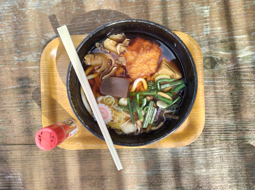 Nothing like a warm bowl of udon topped with an assortment of mountain vegetables after reaching the summit of Mt Takao’s more formidable sister.